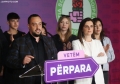 The Mayor of Shijak, Elton Arbana speaking during a press conference after the announcement of the electoral result for the Durres district municipality. The winners have thanked the voters who trusted them to run the municipalities for the next 4 years.