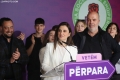 The Mayor of Durres, Emiriana Sako speaking during a press conference after the announcement of the electoral result for the Durres district municipality. The winners have thanked the voters who trusted them to run the municipalities for the next 4 years.