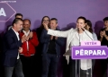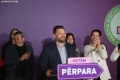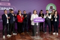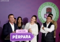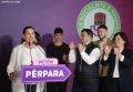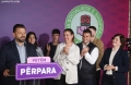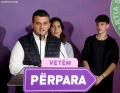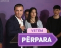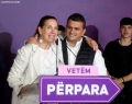 The Mayor of Gjirokaster, Flamur Golemi and the Minister of Tourism and Environment, Mirela Kumbaro during a press conference after the announcement of the electoral result for the Gjirokastar District Municipality. The winners have thanked the voters who trusted them to run the municipalities for the next 4 years.
