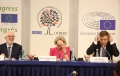 GLOVER SPEAKS ABOUT THE ELECTIONS - The head of the ODIHR mission for the local elections in Albania, Audrey Glover, the international election observer, Stewart Dickson and the member of the European parliament, Sven Simon speaking during a press conference. Glover spoke about the campaign, which he described as quiet, but very focused on political leaders, while he commented on the problems related to electronic voting.