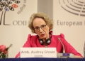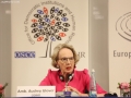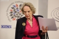 The head of the ODIHR mission for local elections in Albania, Audrey Glover, leaving a press conference. Glover spoke about the campaign, which he described as quiet, but very focused on political leaders, while she commented on the problems related to electronic voting.