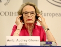 The head of the ODIHR mission for local elections in Albania, Audrey Glover speaking during a press conference. Glover spoke about the campaign, which he described as quiet, but very focused on political leaders, while she commented on the problems related to electronic voting.