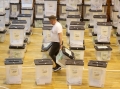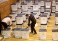 Ballot boxes during the process of counting votes for municipal councils in ZAZ 38, in the premises of the Red School after the mayoral elections in Tirana, as part of the May 14 local elections.