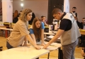 Electoral commissioners during the process of counting votes for municipal councils in ZAZ 38, in the premises of the Red School after the mayoral elections in Tirana, as part of the May 14 local elections.