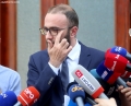 The chairman of the DP parliamentary group, Gazment Bardhi speaking to the journalists, after a meeting with the members who support him within the DP parliamentary group. Bardhi said that he is open to talks with former Prime Minister Berisha for a party union.