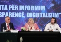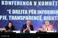Deputy Ermonela Felaj, Minister of State for Services and Standards, Milva Ekonomi and the Commissioner for the Right to Information and Protection of Personal Data, Besnik Dervishi, during the conference The Right to Information - Openness, Transparency, Digitization, organized as part of the 15th anniversary of the Commissioner's office. The conference focused on evaluating the level of implementation of the law On the right to information.