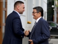 MP Helidon Bushati entering the premises of the new headquarters of the DP, to hold a meeting of the leadership of the Democratic Party, where only the supporters of Bardhi's group took part.