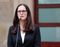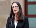 Minister of Culture, Elva Margariti speaking in front of the Prime Minister's office, after a government meeting, regarding the approved decisions