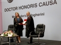 Federica Mogherini and the rector of the University of Tirana, Artan Hoxha at the moment of handing over the title, during a ceremony where Mogherini was decorated with the title Doctor Honoris Causa, in recognition of everything she has done for Albania. During the ceremony, Mogherini was described as a friend of Albania, considering her as one of the few European figures who have seen her work for Albania as more than that.