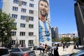 MESSI'S MURAL IN TIRANA - Mural of the Argentinian football player, Lionel Mesi, painted on the facade of the boys' dormitory in Qytet Studenti. Argentinian painter Maximiliano Bagnasco is participating in Tirana MuralFest 2023 and decided to paint his idol, Messi.