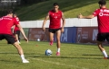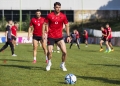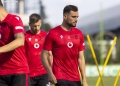 The player of the Albanian national football team, Naser Aliji during a training session in the fields of the Football House before the two official matches of the qualifiers for Euro 2024 against Moldova and the Faroe Islands.