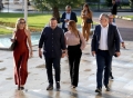 The Minister of Health and Social Protection, Ogerta Manastirliu and the Minister of State for Enterprise Protection, Edona Bilali entering a ceremony organized on the occasion of the 32nd anniversary of the creation of the SP. In the congress of 1991, the old party of Pune decided its reformation, changing its name to the Socialist Party. During the ceremony, Prime Minister Rama and other participants spoke about the party's history and recent achievements and success in the May 14 elections.