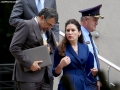 Minister for Europe and Foreign Affairs, Olta Xhacka and Deputy Prime Minister and Minister of Infrastructure and Energy, Belinda Balluku leaving a meeting of the security council, held in the premises of the Presidency. During the meeting, an analysis was made of the state of cyber security and the measures taken by institutions to strengthen cyber protection in critical and important information infrastructures.