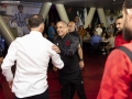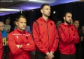 Players of the Albanian national football team, Elseid Hysaj, Amir Abrashi and Ertrit Berisha during a promotion ceremony for Ansi Agolli's documentary Historia Ime at the FSF premises, produced by journalists Elvis Rexha and Glenti Nallbani. The documentary shows his career and his personal story.