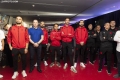 The players of the Albanian national football team, Armando Sadiku, Amir Abrashi, Ertrit Berisha, Elseid Hysaj, Sokol Cikalleshi, the coach of the Albanian national football team, Sylvinho, the vice-president of the AFL, Lutfi Nuriu, President of the AFF, Armand Duka and the former player Ansi Agolli during a promotion ceremony of Agolli's documentary Historia Ime in the premises of the AFL, produced by journalists Elvis Rexha and Glenti Nallbani. The documentary shows his career and his personal story.