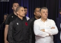 Coach of the Albanian national football team, Sylvinho, and former player Ansi Agolli during a promotion ceremony for Ansi Agolli's documentary Historia Ime at the FSF premises, produced by journalists Elvis Rexha and Glenti Nallbani. The documentary shows his career and his personal story.