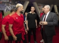 The president of the AFF, Armand Duka and the players of the Albanian national football team, Elseid Hysaj, Armando sadiku and Odise Roshi during a promotion ceremony of Agolli's documentary Historia Ime in the premises of the AFL, produced by journalists Elvis Rexha and Glenti Nallbani. The documentary shows his career and his personal story.