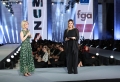Presenter Rudina Magjistari and Executive Director of the Union of Albanian Municipalities in the Region, Andriola Kambo before a fashion show held as part of the MUZA competition, a project undertaken by the Union of Albanian Municipalities in the Region in the framework of Tirana as the European Youth Capital 2022. The purpose of this project is to activate passionate young people and professional, in the revival of ethnographic elements in the field of fashion-design.