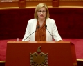 The Minister of State for relations with the parliament, Elisa Spiropali speaking during a parliamentary session, where the MP discussed the DAP report for 2022 as well as the situation created in the north of Kosovo. The opposition MPs have requested to make public the draft sent to the French president and the German chancellor for the association of municipalities with Serbian majority in the north of Kosovo.