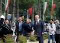 The Prime Minister, Edi Rama and his Hungarian counterpart, Viktor Orban, walking in front of the ministers of the Albanian cabinet, during an official reception ceremony near the Prime Minister's Office.