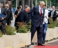 RAMA WELCOME ORBAN IN TIRANA - The Prime Minister, Edi Rama and his Hungarian counterpart, Viktor Orban, walking in front of the ministers of the Albanian cabinet, during an official reception ceremony near the Prime Minister's Office.