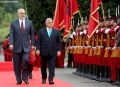 The Prime Minister, Edi Rama and his Hungarian counterpart, Viktor Orban, walking in front of official guards, during an official reception ceremony near the Prime Minister's Office.