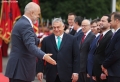 The Prime Minister, Edi Rama and his Hungarian counterpart, Viktor Orban, at the moment of the anthems, during an official reception ceremony near the Prime Minister's Office.