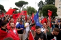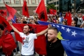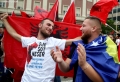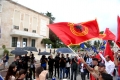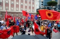 PROTEST IN SUPPORT OF KOSOVO - People singing and holding flags of Albania, Kosovo and the KLA in front of the prime minister's office in Tirana, in support of Kosovo for the situation created in the north. Starting from Prime Minister Edi Rama's criticism of the Kosovar Prime Minister, Kurti, the protesters have asked the Albanian government not to be impartial in its approach and to support Kosovo.