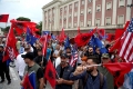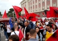 People singing and holding flags of Albania, Kosovo and the KLA in front of the prime minister's office in Tirana, in support of Kosovo for the situation created in the north. Starting from Prime Minister Edi Rama's criticism of the Kosovar Prime Minister, Kurti, the protesters have asked the Albanian government not to be impartial in its approach and to support Kosovo.