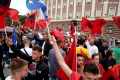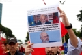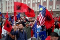 Singers Big Basta and Vesa Luma during a protest in front of the prime minister in Tirana, in support of Kosovo for the situation created in the north. Starting from Prime Minister Edi Rama's criticism of the Kosovar Prime Minister, Kurti, the protesters have asked the Albanian government not to be impartial in its approach and to support Kosovo.