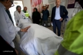 DOCTORS VERIFY THE VICTIM'S BODY - Doctors of the Members of the People's Mujahideen Organization of Iran (MEK) bringing the body of Ali Mostashari to the morgue, who lost his life during the police action in Manza.