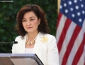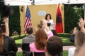 Ambassador of the United States in Tirana, Yuri Kim entering press conference in the premises of the American embassy in Tirana. This was Yuri Kim's last press conference as ambassador to Albania, while she will continue to work within the American administration, taking the position of principal deputy assistant secretary for European affairs at the US State Department.