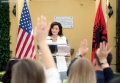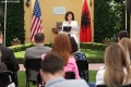 Ambassador of the United States in Tirana, Yuri Kim speking during a press conference in the premises of the American embassy in Tirana. This was Yuri Kim's last press conference as ambassador to Albania, while she will continue to work within the American administration, taking the position of principal deputy assistant secretary for European affairs at the US State Department.