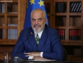 Prime Minister Edi Rama speaking during a press conference, where he commented on the situation in the north of Kosovo. Rama stated that he sent a letter to German Chancellor Scholz and French President Macron regarding the issue and stated that the 3 Kosovar police officers must be released as soon as possible.
