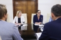 Minister of Finance and Economy, Delina Ibrahimaj and member of the board of directors of the European Bank for Reconstruction and Development, Caspar Veldkamp before an offical meeting with the Board of Directors of the European Bank for Reconstruction and Development (EBRD), who are conducting a 3-day visit to Albania. During the meeting, the participants talked about the cooperation between the Bank and the Albanian state, structural reforms in Albania and coping with crises.