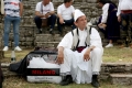 Citizens in the Gjirokastra Castle before the start of the Folklore Festival of Gjirokastra. The festival will be held for 8 nights in the castle, on a stage open to all.
