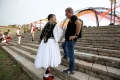 Artists of the folk ensembles in traditional clothes in the Gjirokastra Castle before the start of the Folklore Festival of Gjirokastra. The festival will be held for 8 nights in the castle, on a stage open to all.