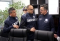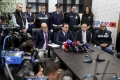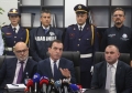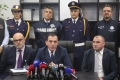 Italian police forces entering a SPAK press conference, where an anti-drug operation in cooperation with the Italian authorities was announced, from which 20 people have been arrested and 1 is wanted for drug trafficking.