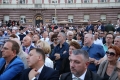 Citizens during the ceremony organized on Deshmoret e Kombit boulevard, in front of the Prime Minister's office on the occasion of Bill Clinton's first visit to Tirana. Clinton received the Star of Appreciation for Public Achievements award, while giving a speech about the achievements of the Albanian state and commented on the situation in northern Kosovo.