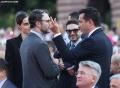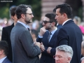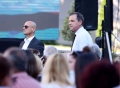MP Lulzim Basha and Enkelejd Alibeaj during the ceremony organized on Deshmoret e Kombit boulevard, in front of the Prime Minister's office on the occasion of Bill Clinton's first visit to Tirana. Clinton received the Star of Appreciation for Public Achievements award, while giving a speech about the achievements of the Albanian state and commented on the situation in northern Kosovo.