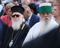 Grandfather Hajji Baba Mondi, orthodox Archbishop Anastasios Yannoulatos and head of the Muslim Community, Bujar Spahiu during the ceremony organized on Deshmoret e Kombit boulevard, in front of the Prime Minister's office on the occasion of Bill Clinton's first visit to Tirana. Clinton received the Star of Appreciation for Public Achievements award, while giving a speech about the achievements of the Albanian state and commented on the situation in northern Kosovo.