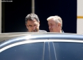 CUCI MEET WITH RRUMBULLAKU - The Minister of the Interior, Bledar Cuci, and the General Director of Police, Muhamet Rrumbullaku, getting into the car after a meeting where they discussed the incident that happened in Borizane, Fushe Kruje. A few hours later, Cuci was dismissed from his post by Prime Minister Edi Rama.