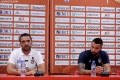 The coach of KF Tirana, Orges Shehi and captain Filip Najdovski speaking during a press conference before the match with the Georgian team of Dinamo Batumi, valid for the first round of eliminations for the UEFA Conference League group stage.