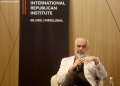 Prime Minister Edi Rama and the director for Europe of the International Republican Institute (IRI), Paul McCarthy speaking during an open meeting, where they discussed developments in the region, democracy in the country and spaces for women in politics.