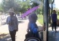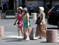 Citizens with hats on their heads, as a result of high temperatures, walking in the streets of Tirana on July 18, 2023. Albania has been engulfed in a heatwave and drought that has scorched Europe, with temperatures well above 40 degrees Celsius.