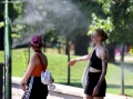 HOT WEATHER IN TIRANA - Citizens walking in the coolers installed in the city by the municipality of Tirana on July 18, 2023. Albania has been engulfed in a heatwave and drought that has scorched Europe, with temperatures well above 40 degrees Celsius.