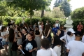 Students of the Faculty of Medicine standing in front of the parliament during a session, in protest against the draft law for forced employment for 5 years after completing their studies.