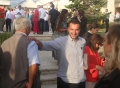 The Mayor of Vlore, Ermal Dredha and the Minister of Culture, Elva Margariti exiting a meeting of the Assembly of the Socialist Party, during which the result of the local elections of May 14 was discussed. During the meeting, some changes were made in the structure of the SP, where Damian Gjiknuri was dismissed from his position as General Secretary of the SP, to be replaced by Blendi Klosi, while the former minister of the interior, Bledar Cuci, was appointed as the head of the parliamentary group SP.