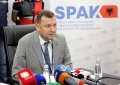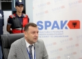 SPAK prosecutor Ened Nakuci speaking during a press conference from SPAK offices, where the result of an Albanian-Italian operation against call center fraud schemes was announced.