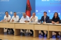 The heads of local branches and the candidates of the municipalities of Belsh, Peqin, Cerrik, Librazhd and Gramsh, MP Flamur Noka and the former candidate of the coalition Bashke Fitojme in Prrenjas, Suzana Topi speaking during a press conference, where they presented a part of the PD report on the thefts and abuses of the government and the socialist party during the May 14 elections.